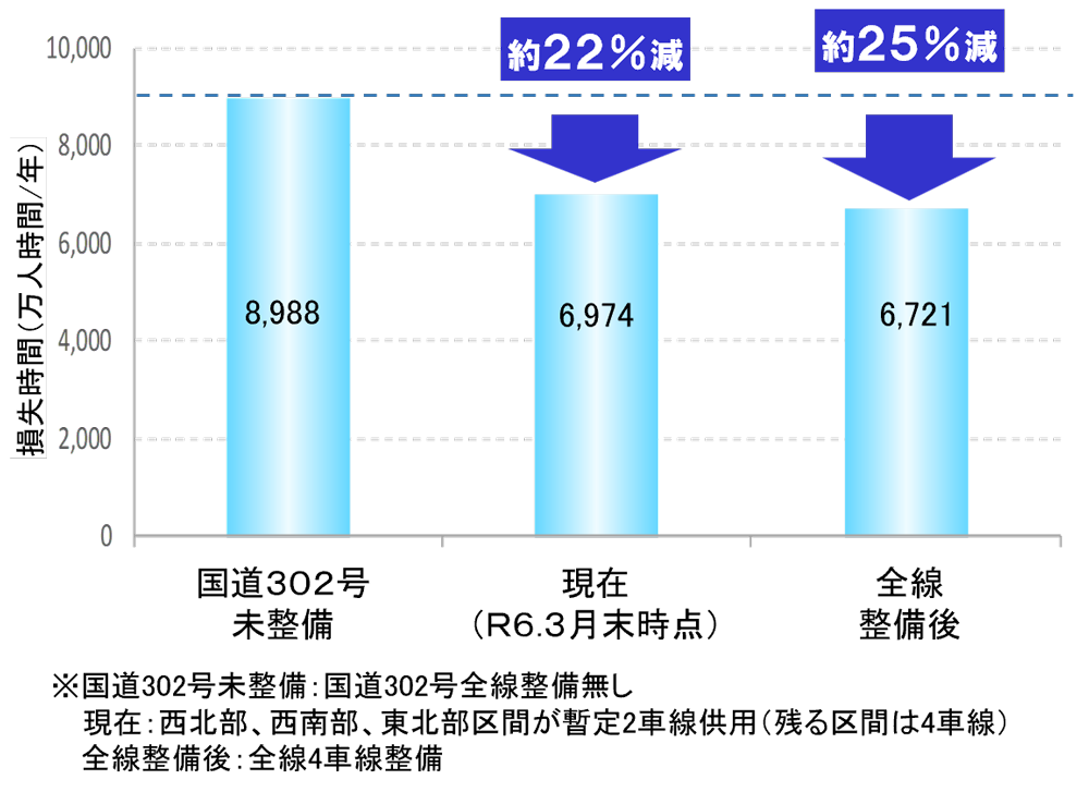 - 国道302号開通区間の増加に伴い、放射道路から環状道路に自動車の利用割合がシフト。