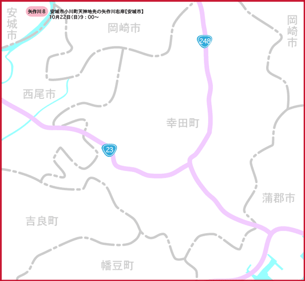河川部トップ > 催し物の御案内 > 川と海のクリーン大作戦 > クリーン大作戦の実施概要マップ > 豊川・矢作川 > 豊川・矢作川7 安城市・岡崎市・西尾市・幸田町・吉良町・幡豆町・蒲郡市
