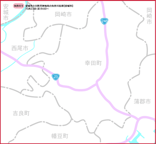 河川部トップ > 催し物の御案内 > 川と海のクリーン大作戦 > 過去のデータ > クリーン大作戦の実施概要マップ > 豊川・矢作川 > 豊川・矢作川7 安城市・岡崎市・西尾市・幸田町・吉良町・幡豆町・蒲郡市
