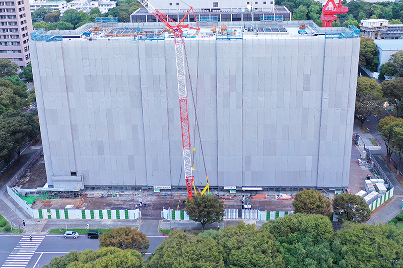 【令和4年11月】外部足場の組立完了、解体工事を進めています。