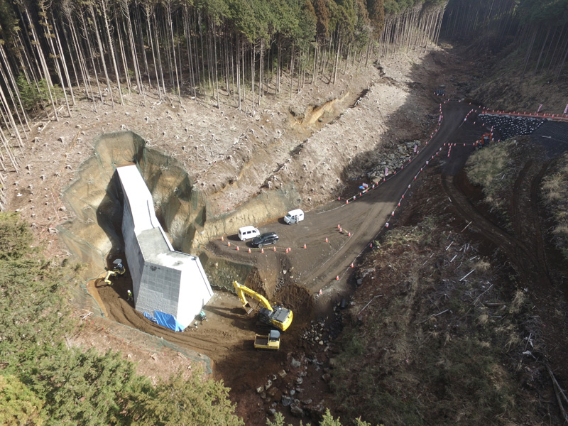 富士山南西野渓・千束川において、土砂災害防止を目的として千束第3堰堤工群における千束第8砂防堰堤を整備する工事です。