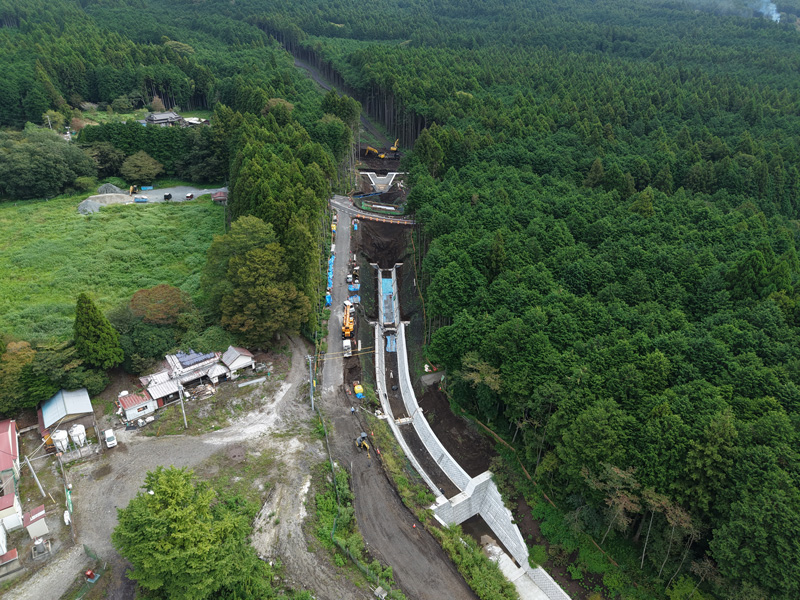 富士山南西野渓・揚久保沢の土砂災害の防止を目的として渓流保全工を整備する工事です。