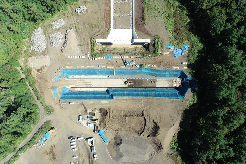富士山北麓地区において、新たな砂防施設(浅間沢遊砂地工)を整備する工事です。