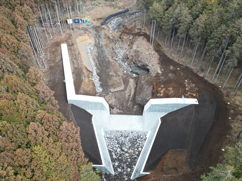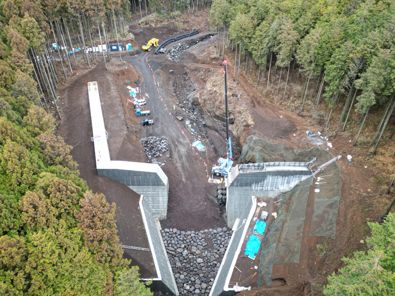 富士山南西野渓における土砂災害の防止を目的として風祭上流第2堰堤工群における