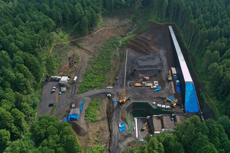 富士山南西野渓・角木沢の土砂災害の防止を目的として砂防堰堤を整備する工事です。