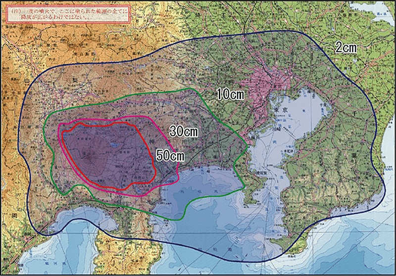 (1707年の宝永噴火規模の噴火があった場合の降灰分布図)