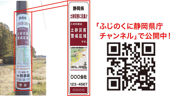 | 【現地表示の一環として取り組む電柱広告】 | 【山梨県土砂災害警戒情報システム】 |