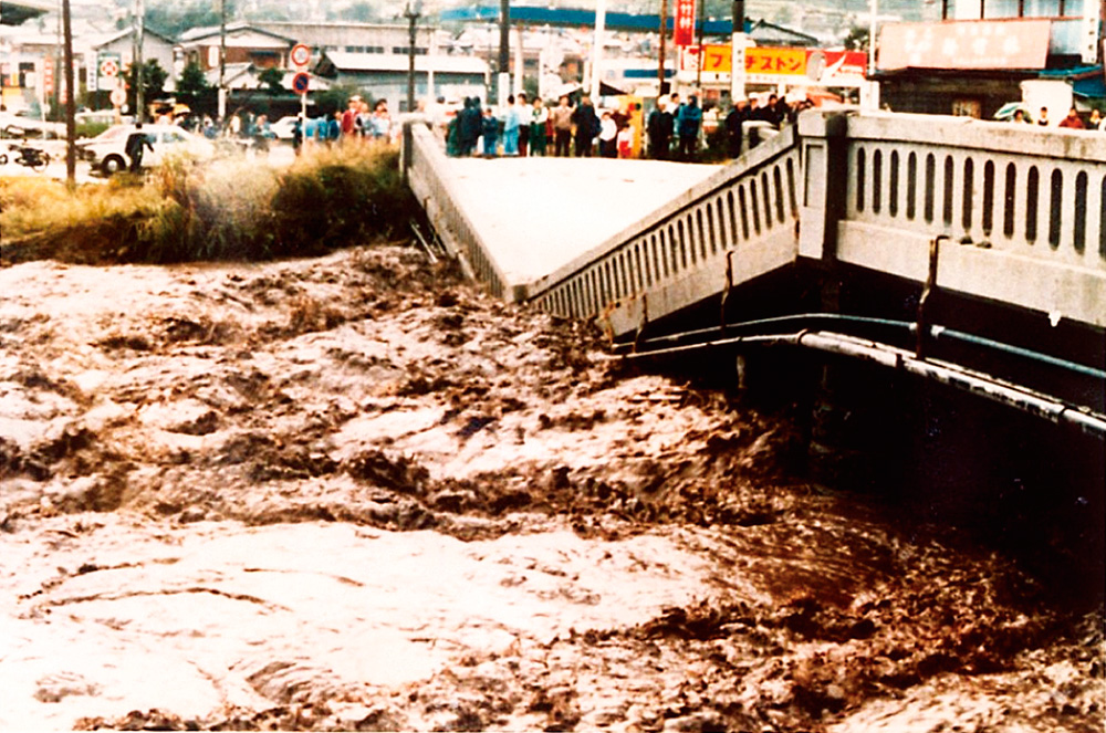 富士山南西麓の過去 富士山南西麓(ふじさんなんせいろく)には、大沢崩(おおさわくず)れを代表例に普段は水が流れていない沢が数多く存在しています。これら渓流では融雪期(ゆうせつき)や豪雨期(ごううき)にたびたび土石流(どせきりゅう)が発生し、田畑や家屋等に甚大な被害を与えてきた歴史があります。 加えて、潤井川(うるいがわ)の河床上昇や田子の浦港(たごのうらこう)への土砂堆積を引き起こす等、沿川の住民は多くの被害を被ってきました。 |