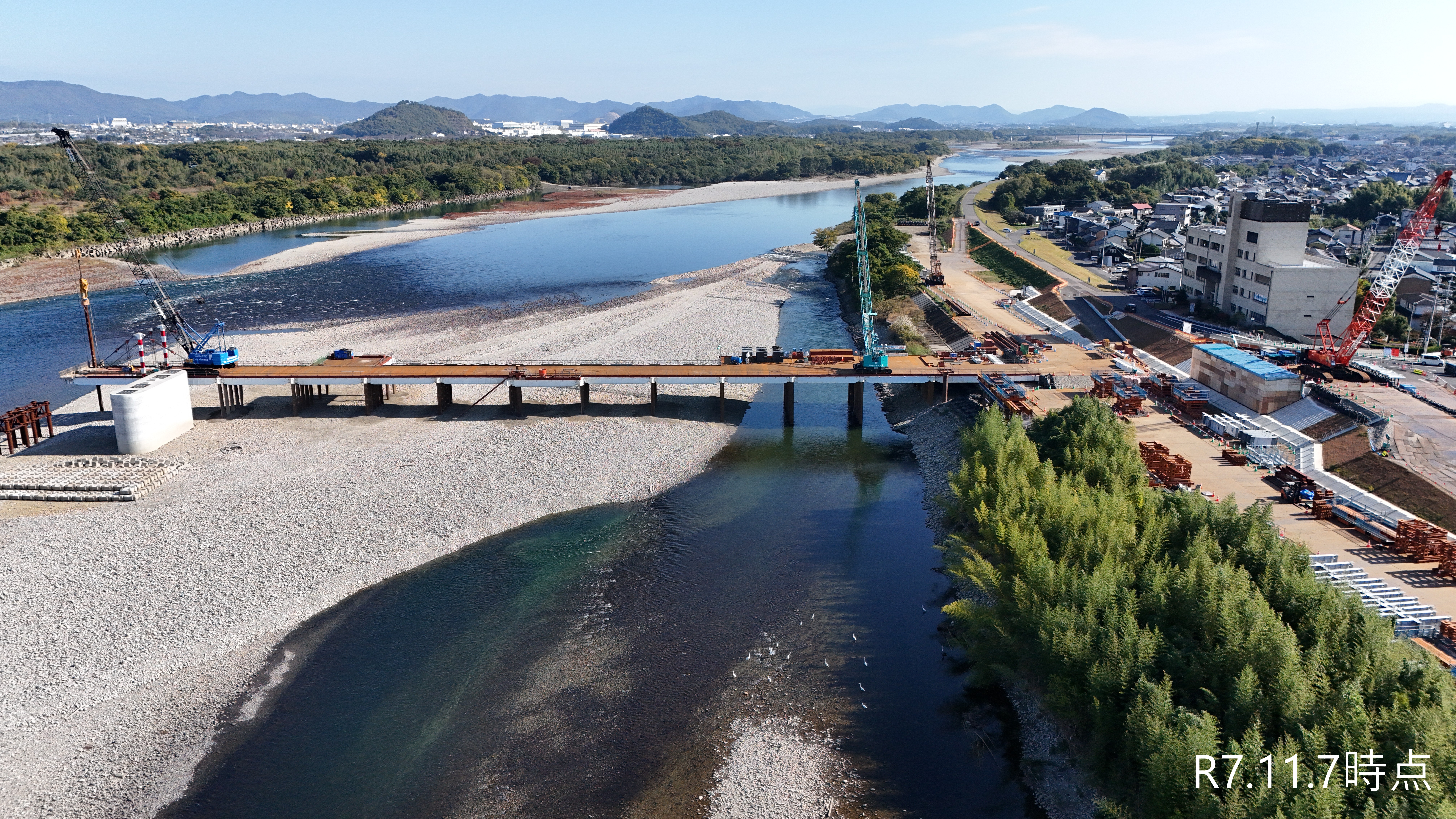 令和7年 11月7日時点 川島大橋の復旧【右岸より】(桁架設工事)