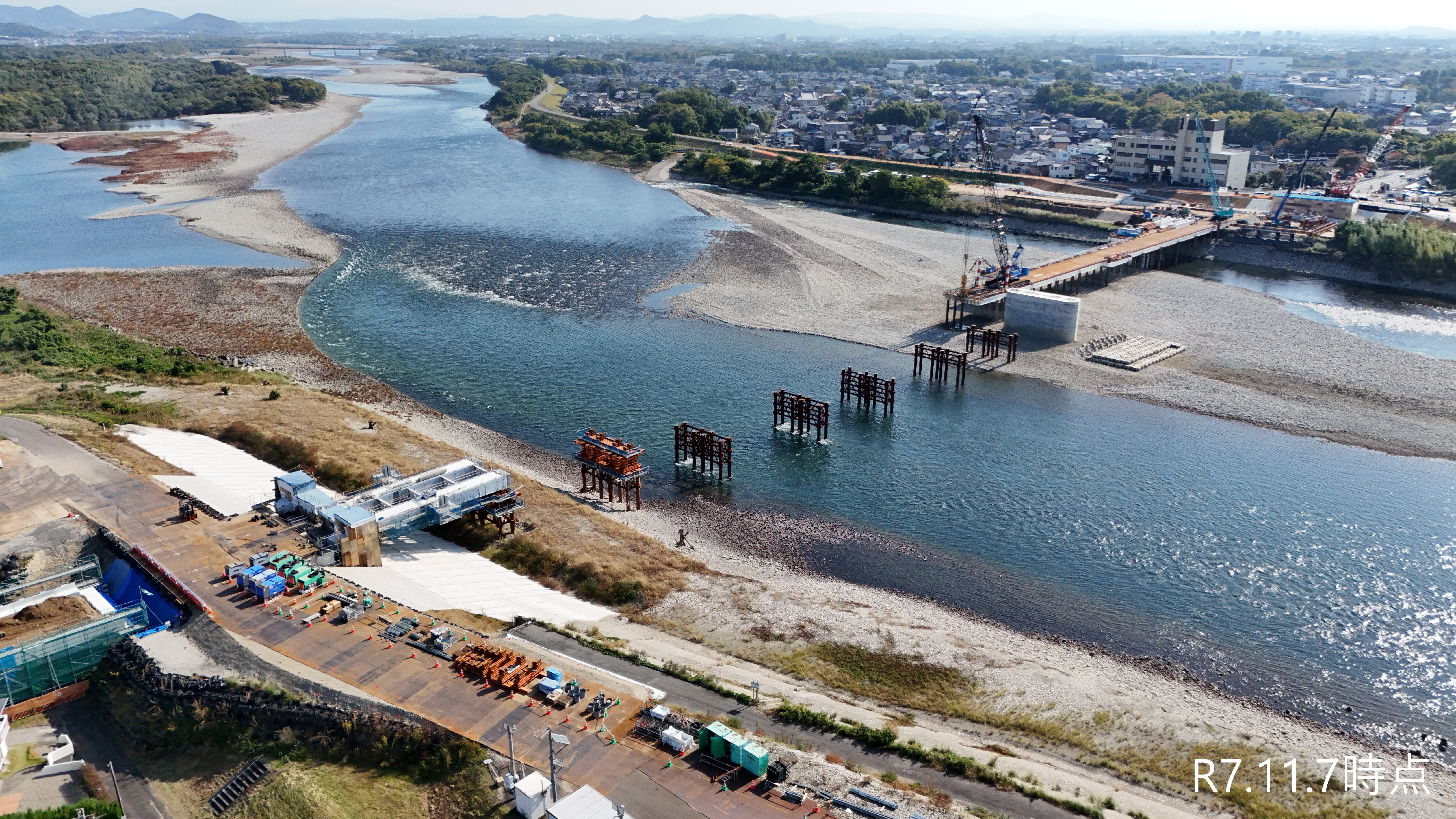 令和7年 11月7日時点 川島大橋の復旧【下流より】(全景)