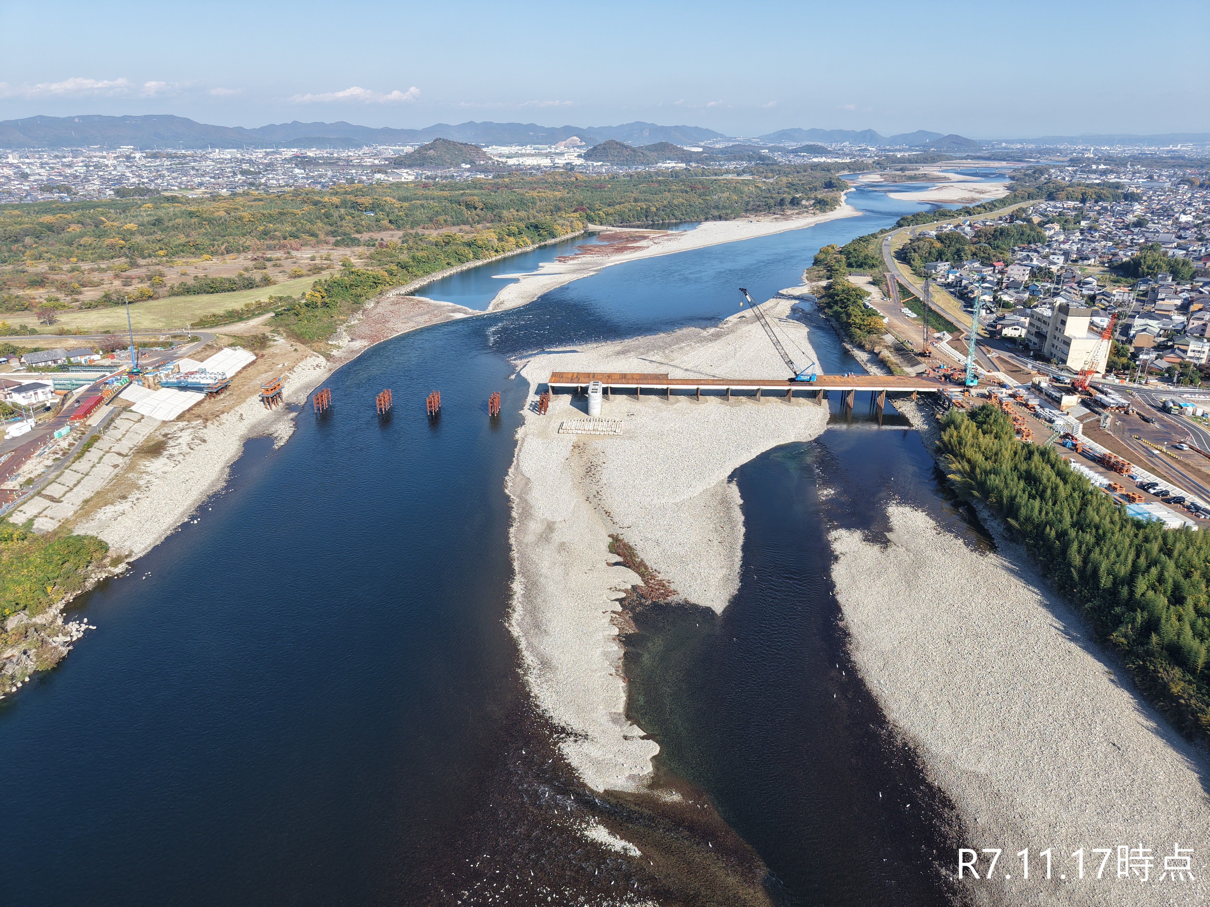 令和7年 11月17日時点 川島大橋の復旧【下流より】(全景)