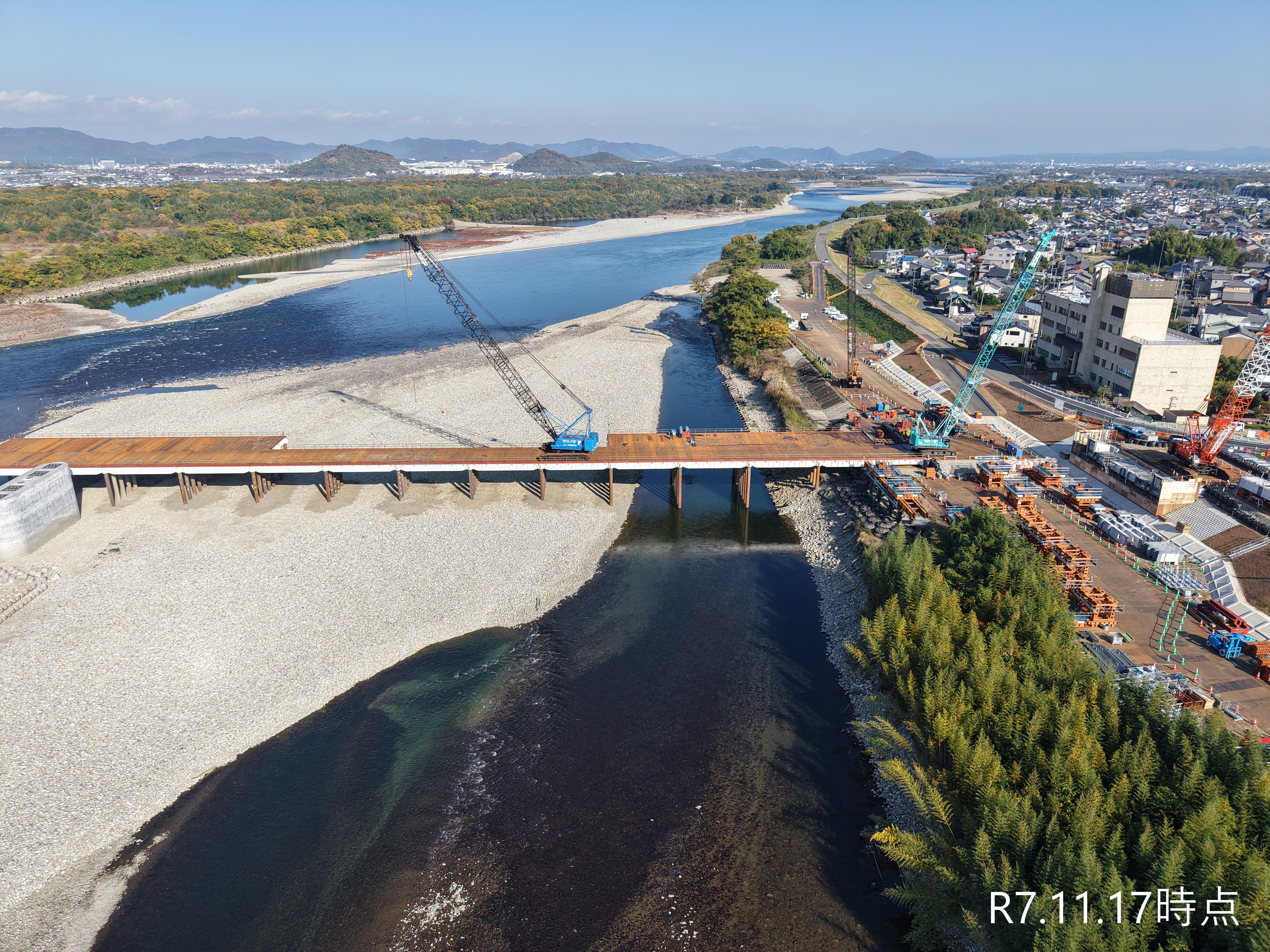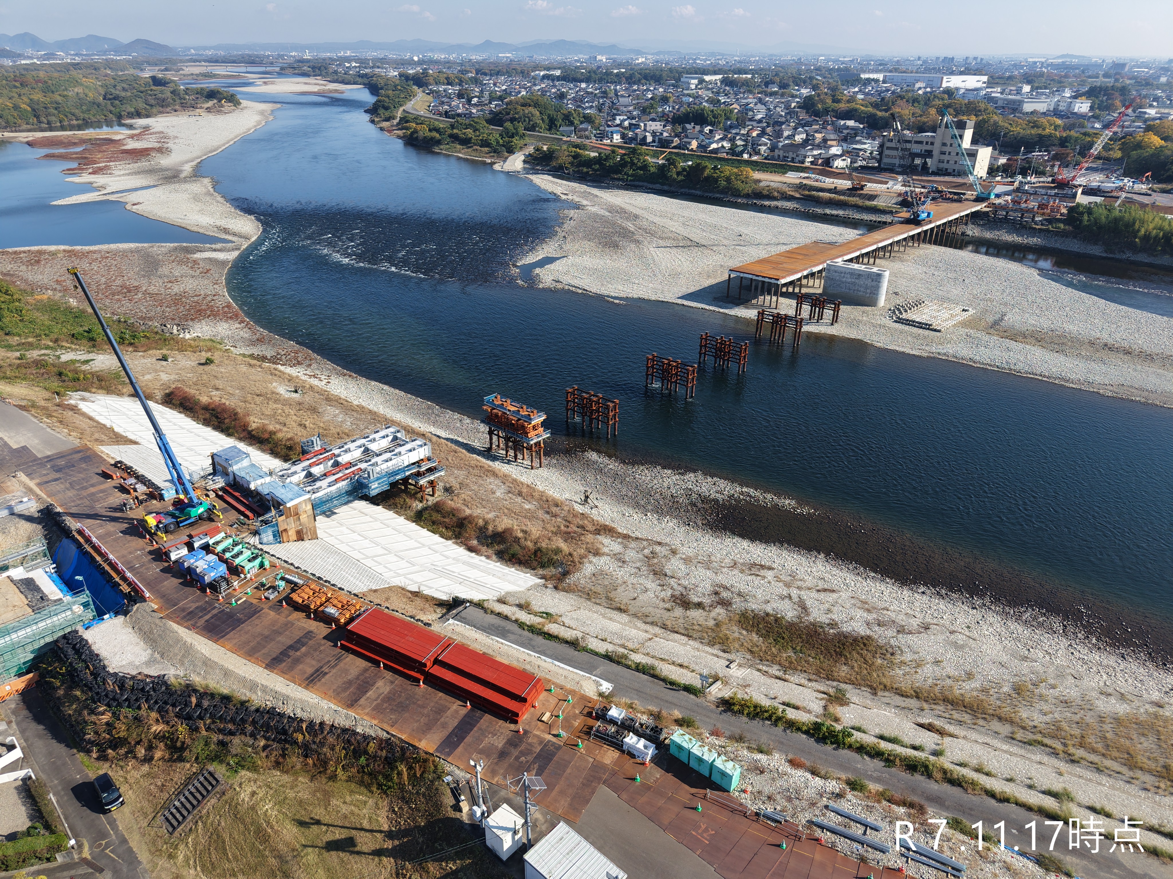 令和7年 11月17日時点 川島大橋の復旧【右岸より】(桁架設工事)
