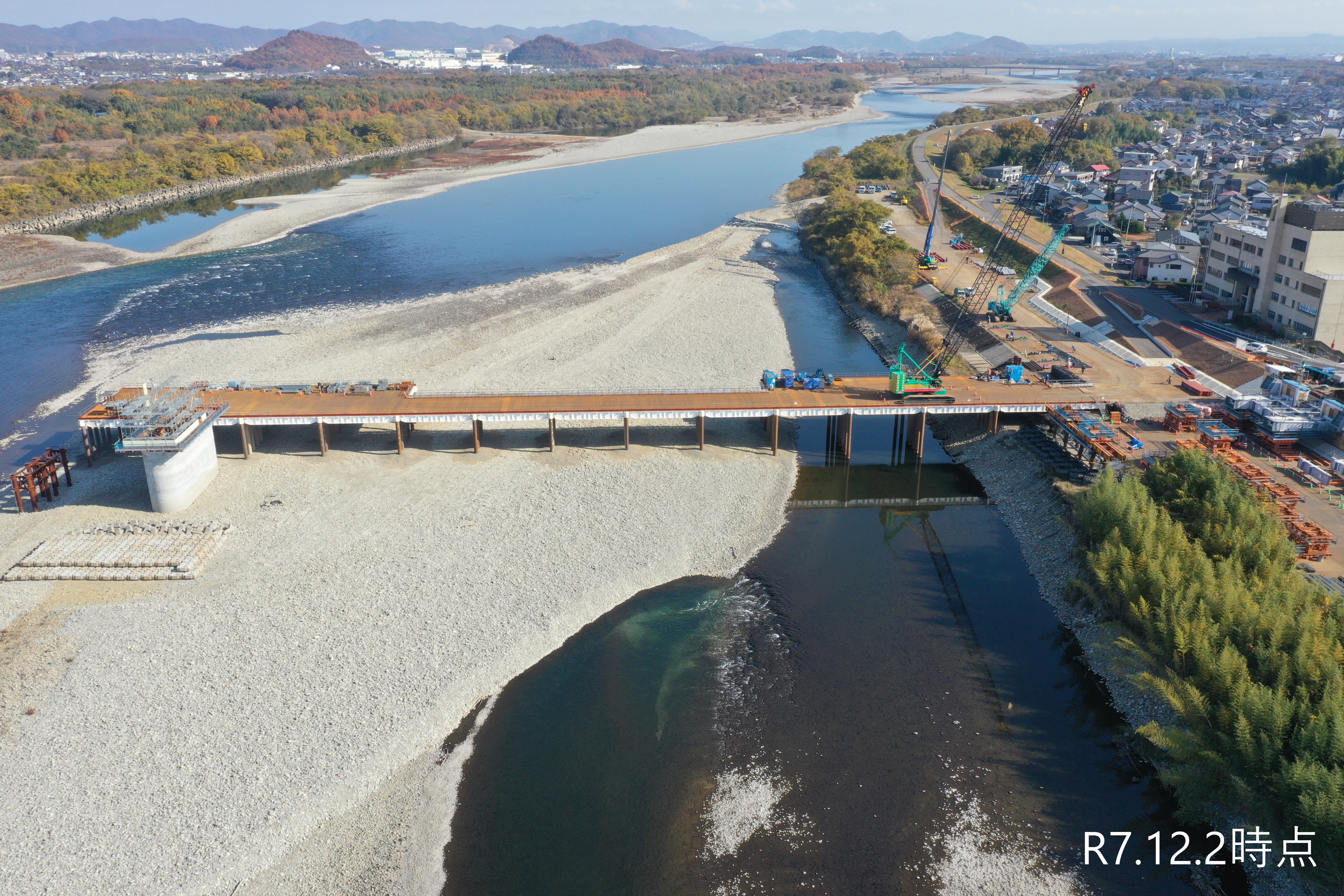 令和7年 12月2日時点 川島大橋の復旧【下流より】(全景)