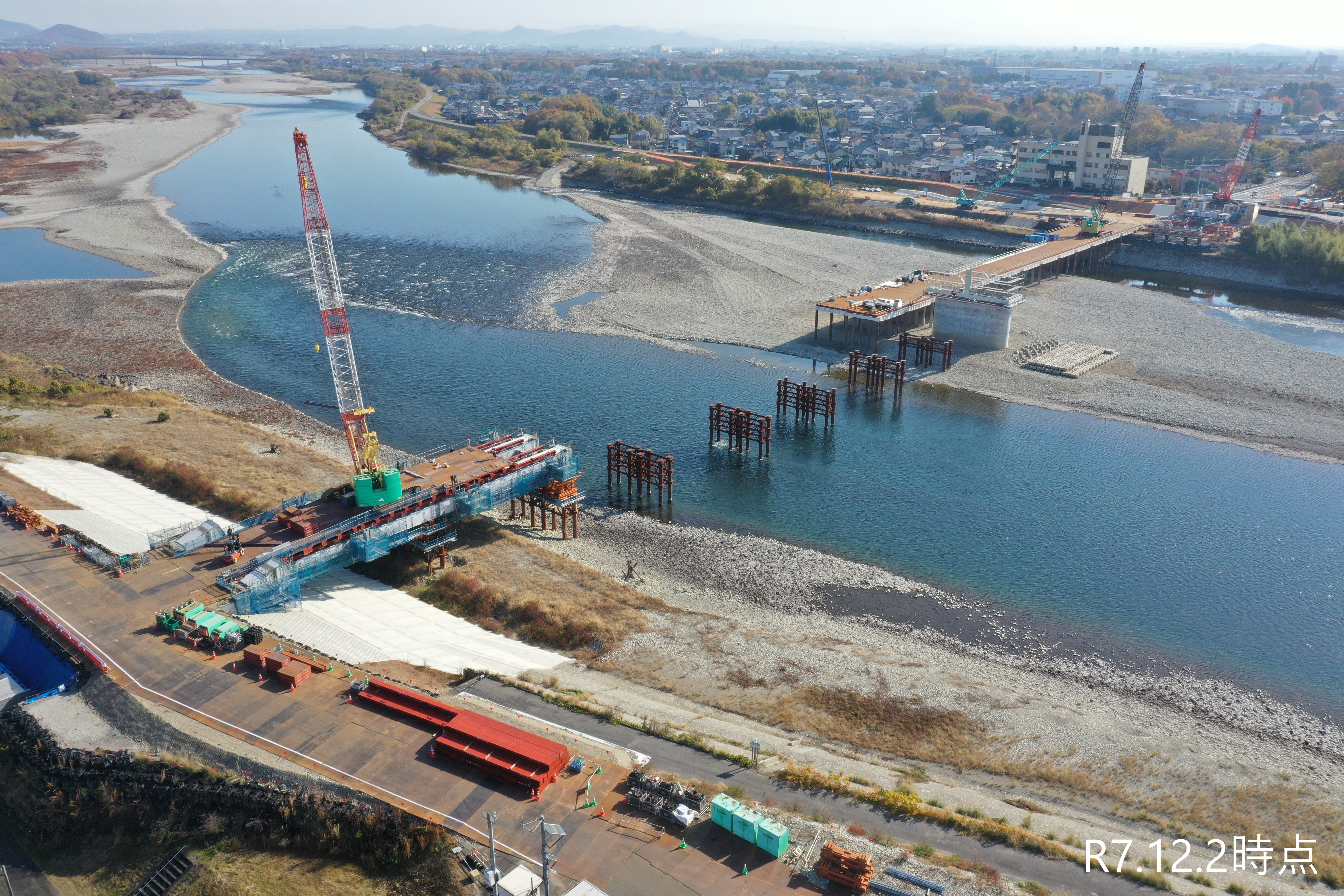 令和7年 12月2日時点 川島大橋の復旧【左岸より】(桁架設工事)
