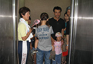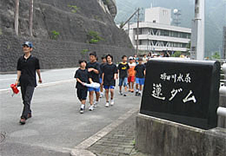 ![]() 管理所内の操作室へ移動。「ダムまで行かなくてもここから操作できます。」ずらりとならんだ操作盤に興味津々。 |