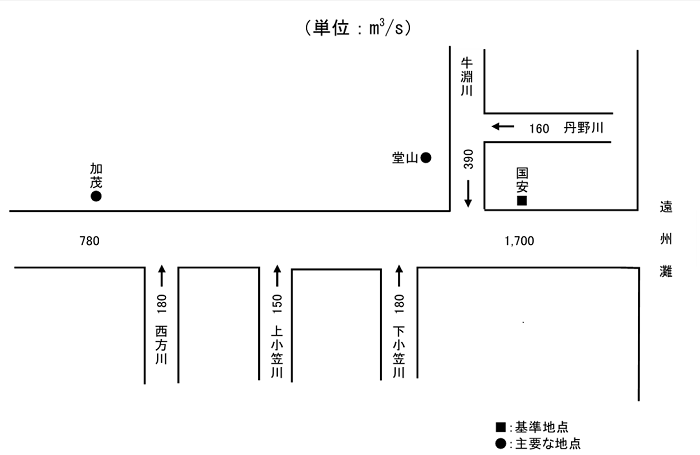 | 5.計画流量 | (国安地点) 基本高水流量:1,800m3/s、計画高水流量:1,700m3/s |