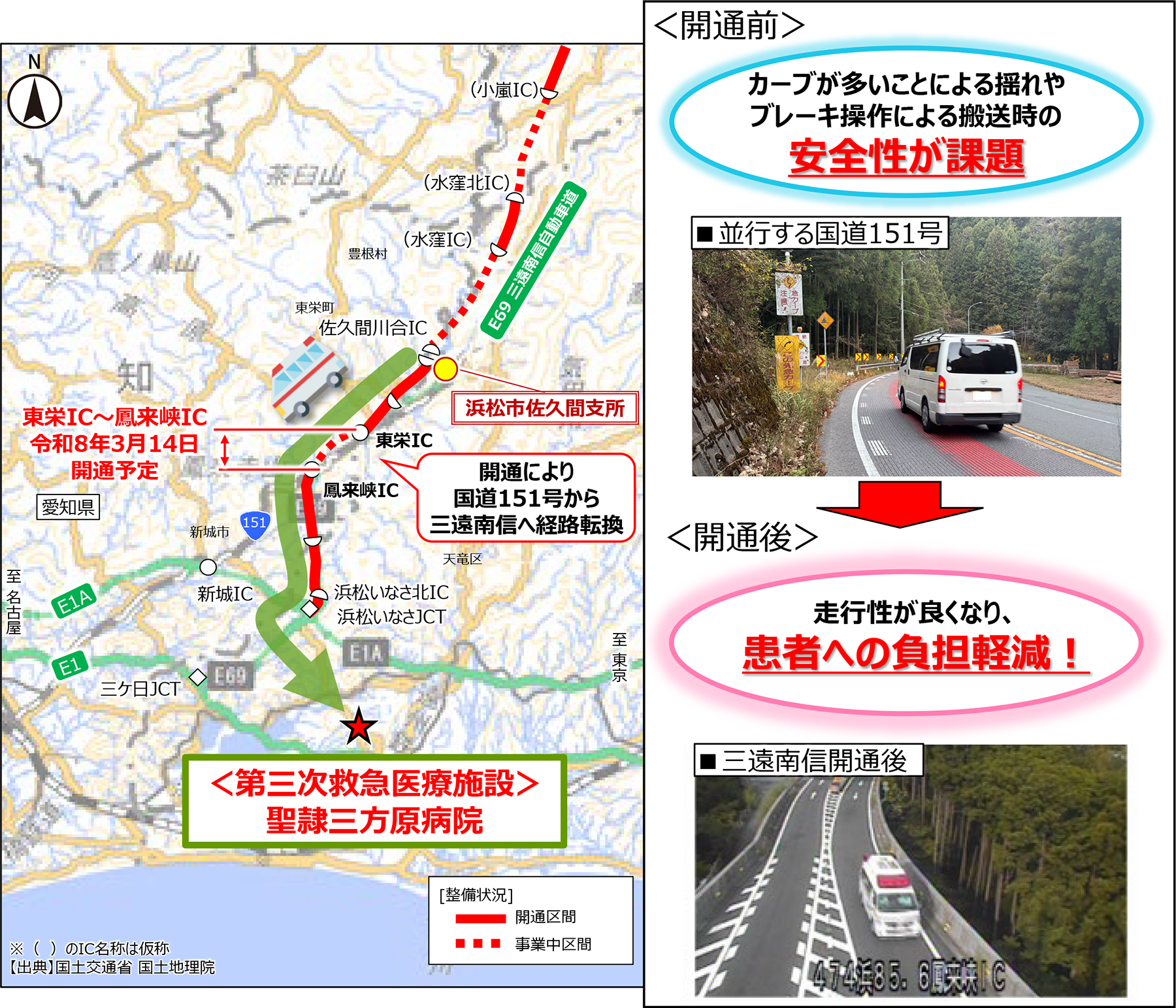 - 東栄IC~鳳来峡IC間の開通により、走行性が向上し患者の負担軽減に寄与。