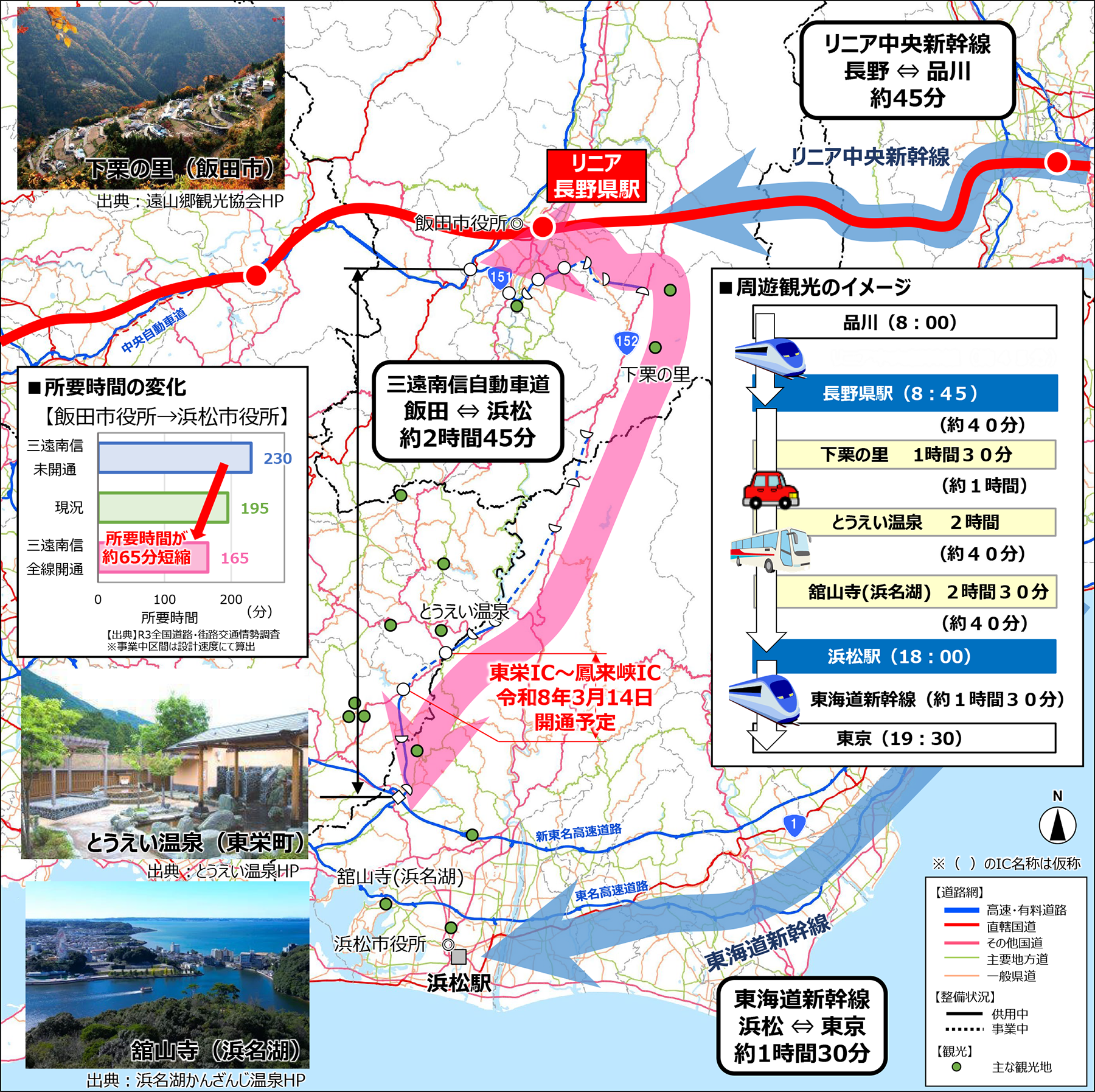 WISENET2050への対応- 三遠南信自動車道の全線開通により、未整備時に比べ所要時間が約65分短縮。