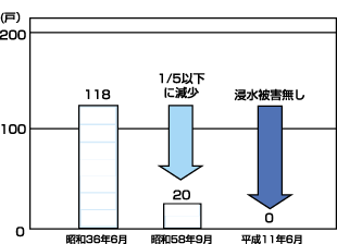 この治水事業により戦後最大の流量を記録した昭和58年9月の台風10号においては、昭和36年災害の最大流量を上回る洪水であったにもかかわらず浸水