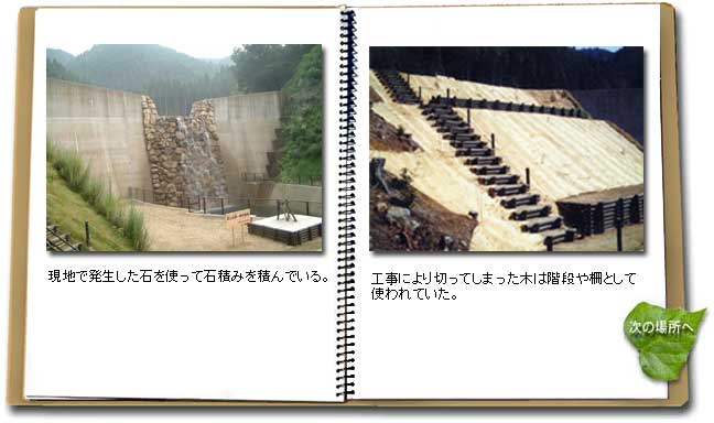 深山不動の滝や周辺の景観とのバランスを考え水の流れる部分が石積になっています。