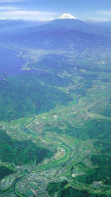 川の歴史 川の名前の由来 狩野川名称の由来は、地名の軽野から変化したと考えられる軽野説。第二に焼畑農業のことをカノと呼ぶことから付けられたと考えられる火野説。そして、江戸幕府の資金源の金山があったことから、それが変化してつけられた金川説などいくつもの説があります。 太平洋に注ぐ唯一、北上する川 狩野川流域は静岡県東部に位置し、北は富士山、南は天城山に及ぶ細長い形状をしています。南からは狩野川本川が北上、 北からは富士山を源とする支川の黄瀬川が南下して田方平野で合流し、駿河湾に注ぐという特徴的な河川形態をしています。 治水の概要 狩野川の国による治水事業は昭和2年から始められ、昭和33年狩野川台風による大災害を受け、放水路工事の促進が大いに図られ、昭和40年7月ついに狩野川放水路は完成しました。 その後も、河川・砂防事業が精力的に進められています。