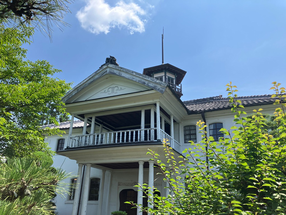 現存する県内最古の小学校校舎で、玄関ポーチ上部のバルコニーなど素朴な擬洋風意匠が特徴的な2階建の木造建築です。