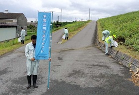| 活動結果 | ゴミ袋(50L) 1袋 堤防天端、川外のゴミ拾いを行いました。 多くの可燃ゴミ、スプレー缶、ペットボトル等がありました。 継続し清掃活動をしていきたいと思います。 |