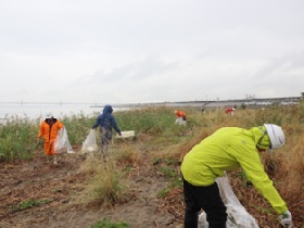 活動結果 | 90Lごみ袋36個、葦ごみ等トンパック4個、4t車1台 流木・灌木 軽4輪車1台 |