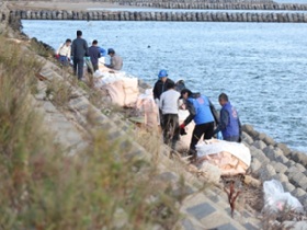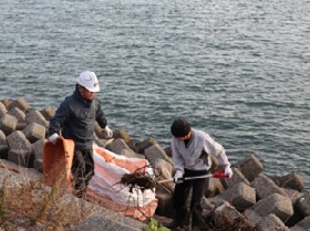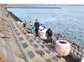 | 活動結果 | 90Lゴミ袋9個、葦等漂着ごみトンパック10個3t車2台、流木、灌木4t車1台 |