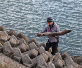 ![]() 流木回収作業の様子 |