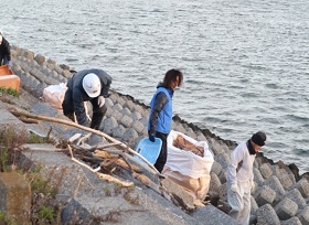 | 活動結果 | 90Lごみ袋6袋、葦等漂着ごみトンパック8個3t車2台、 流木、灌木2t車1台 |
