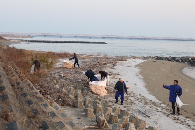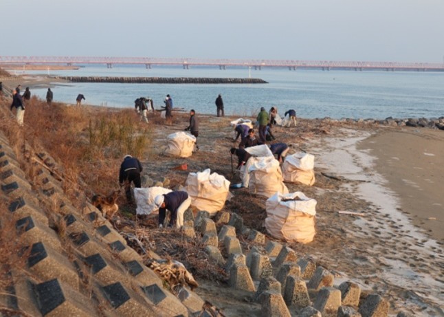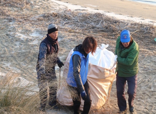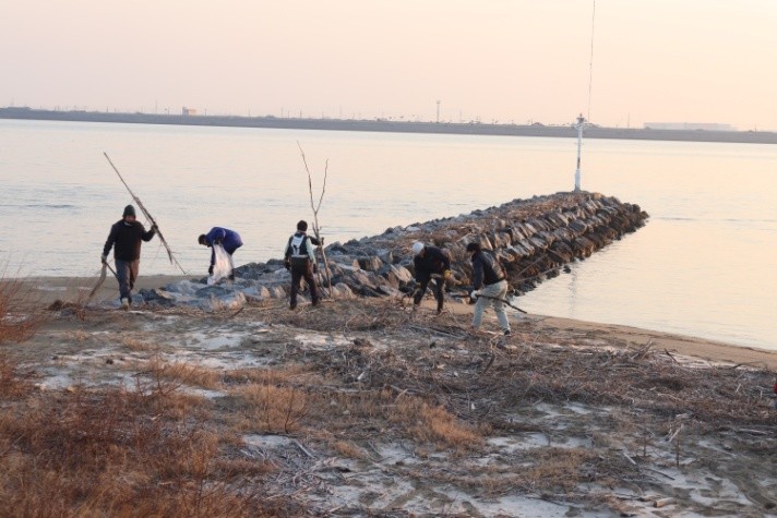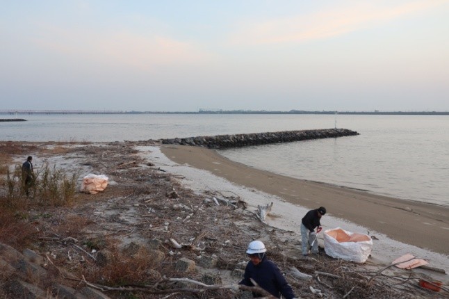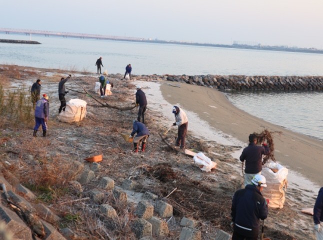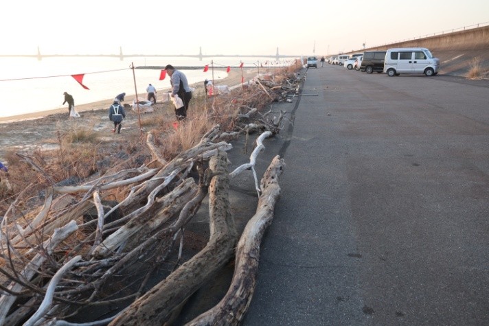 | 活動結果 | 90Lごみ袋6個、 葦等漂着ごみトンパック9個3t車2台、流木、灌木4t車2台 |