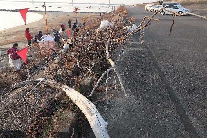 | 活動結果 | 90Lごみ袋7個、葦ごみ等トンパック7個、3t車2台、流木、灌木4t車1台 |