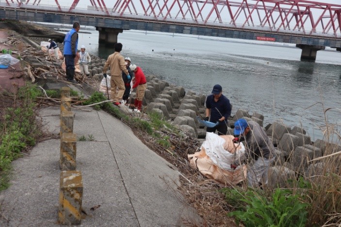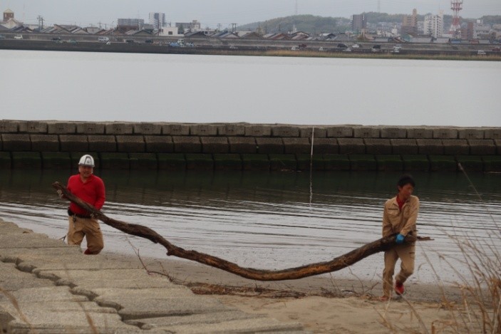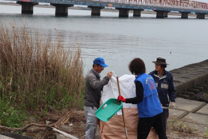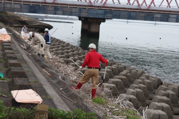 | 活動結果 | 90Lごみ袋12袋、タイヤ1本、葭ごみトンパック10個、 3t車2台、流木、灌木4t車1台 |