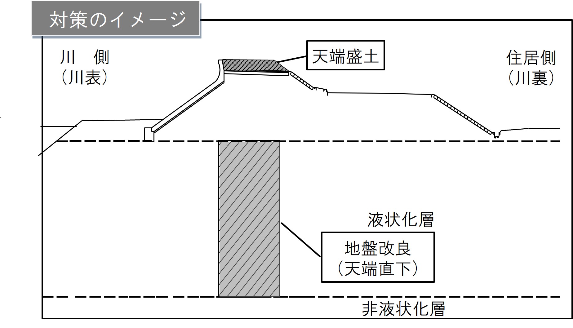 地震・津波対策は、地盤等の液状化による堤防の沈下を抑制することを目的に実施するものです。 | |||||||||||