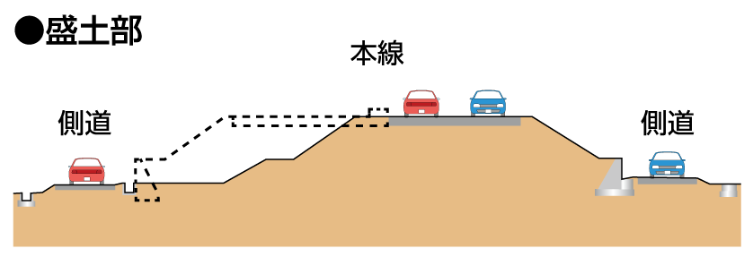 豊橋東バイパスは、平成4年度に事業化され、平成7年度には全線が地域高規格道路に指定されています。工事は平成14年度より着手し、平成18年度には、七根ICから野依ICまでの約2.3kmを、平成23年度には細谷ICから七根ICまでの約4.4kmを、また平成25年度に豊橋東ICから細谷ICまでの約2.5kmを暫定2車線で供用し、現在までに全線を暫定2車線で供用しています。