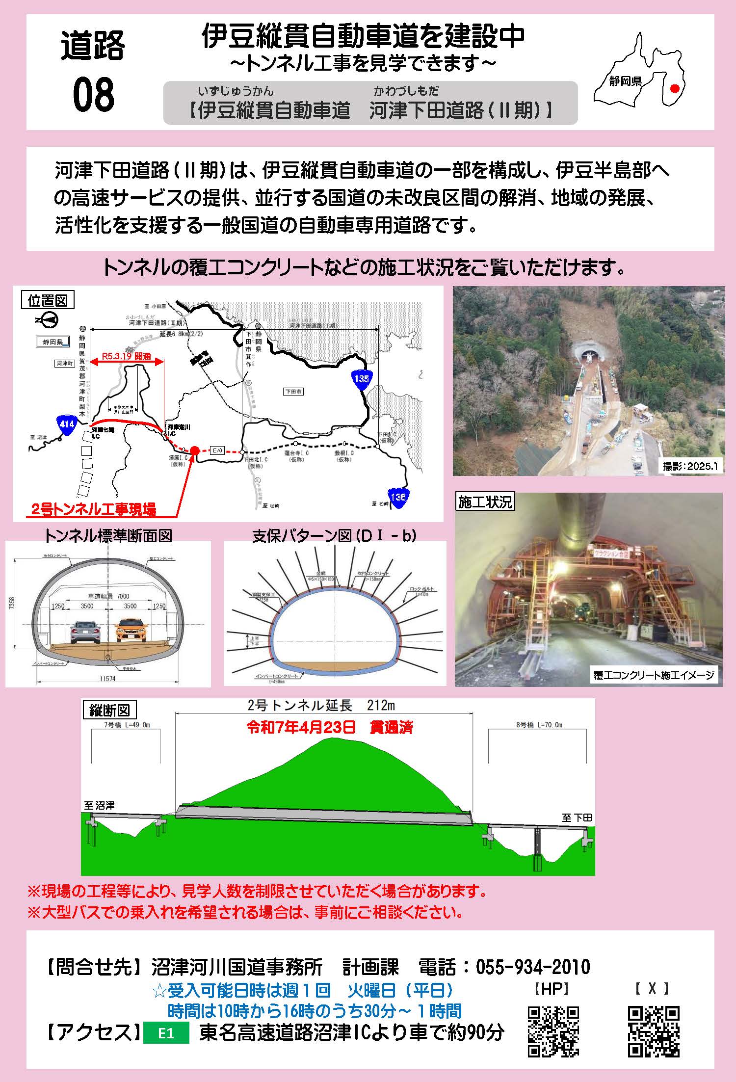 道路事業 御殿場国道維持出張所 工事進捗(鋭意施工中の工事) 完成工事(過年度工事) 沼津国道維持出張所 工事進捗(鋭意施工中の工事) 完成工事(過年度工事) 伊豆縦貫自動車道出張所・下田建設監督官詰所 工事進捗(鋭意施工中の工事) 完成工事(過年度工事) 国道414号 河津下田道路(工事進捗)