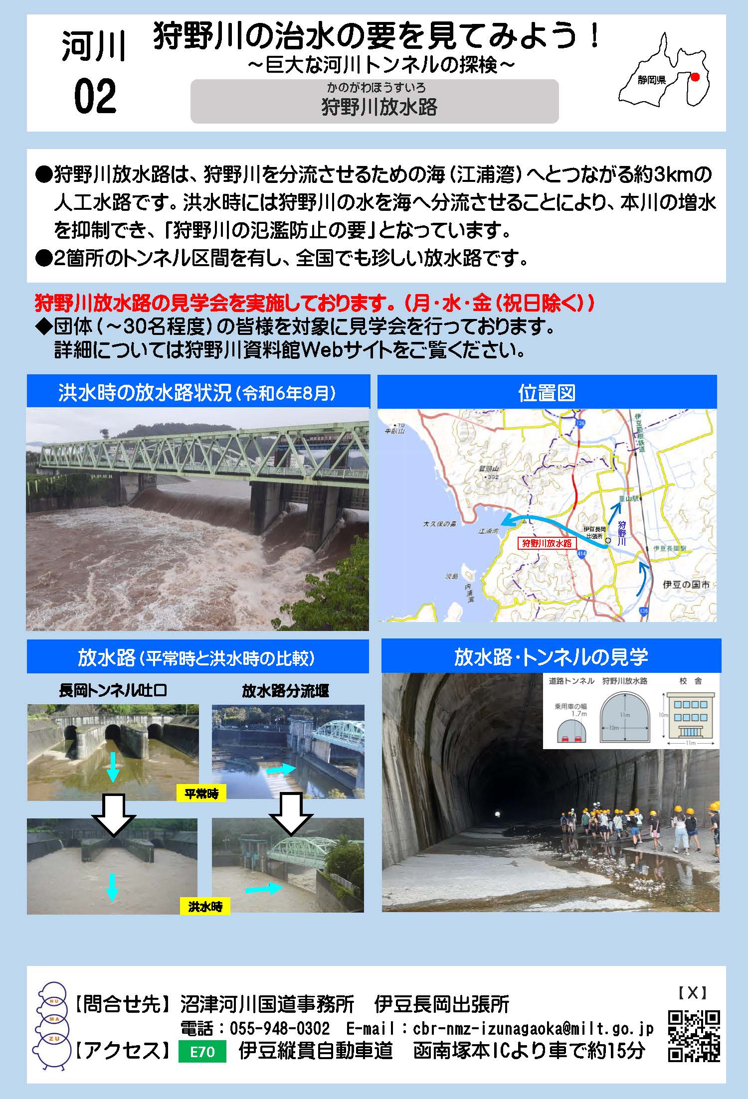 旬な現場 沼津河川国道事務所管内で現在実施されている工事現場をご紹介いたします。 狩野川の治水の要を見てみよう! ~巨大な河川トンネルの探検~【狩野川放水路】 PDF:388KB 事務所案内/伊豆長岡出張所 伊豆長岡出張所/工事進捗(鋭意施工中の工事) 伊豆縦貫自動車道を建設中 ~トンネル工事を見学できます~【伊豆縦貫自動車道 河津下田道路(Ⅱ期)】 PDF:449KB 事務所案内/沼津河川国道事務所 計画課 その他、国土交通省 中部地方整備局管内の旬な現場一覧は「旬な現場一覧」でご覧いただけます。