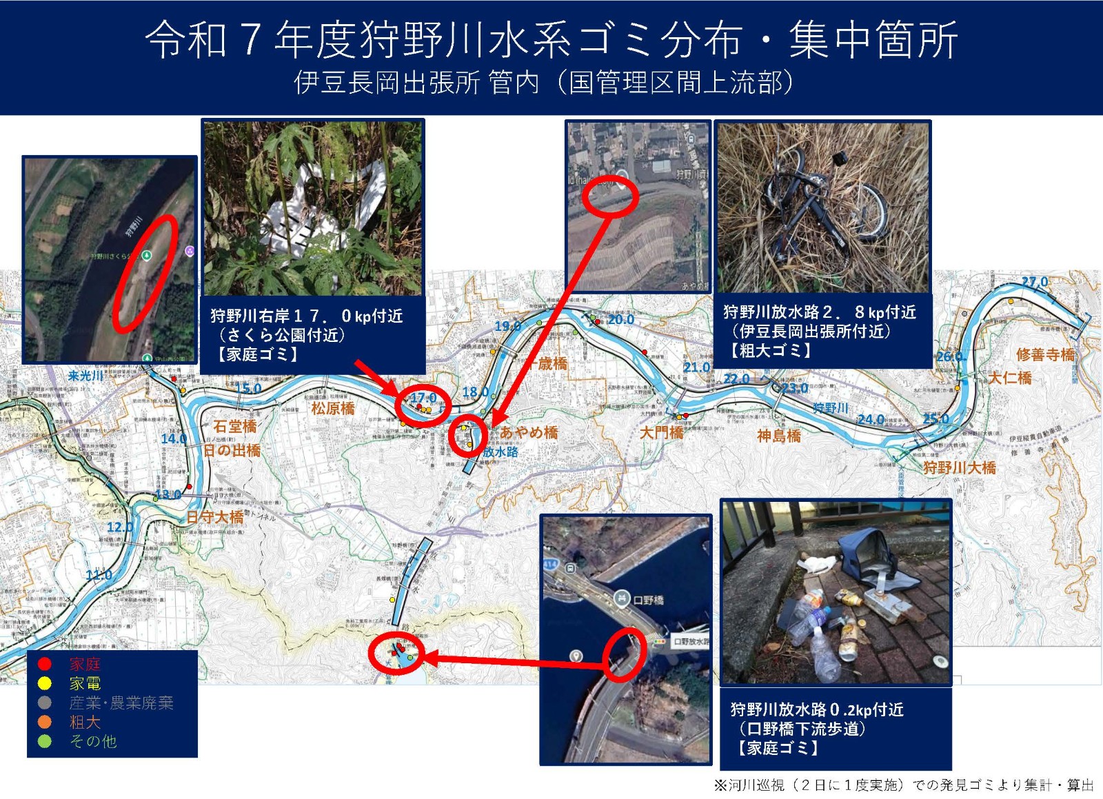 狩野川ゴミマップ 伊豆長岡出張所管内(直轄管理区間上流部)