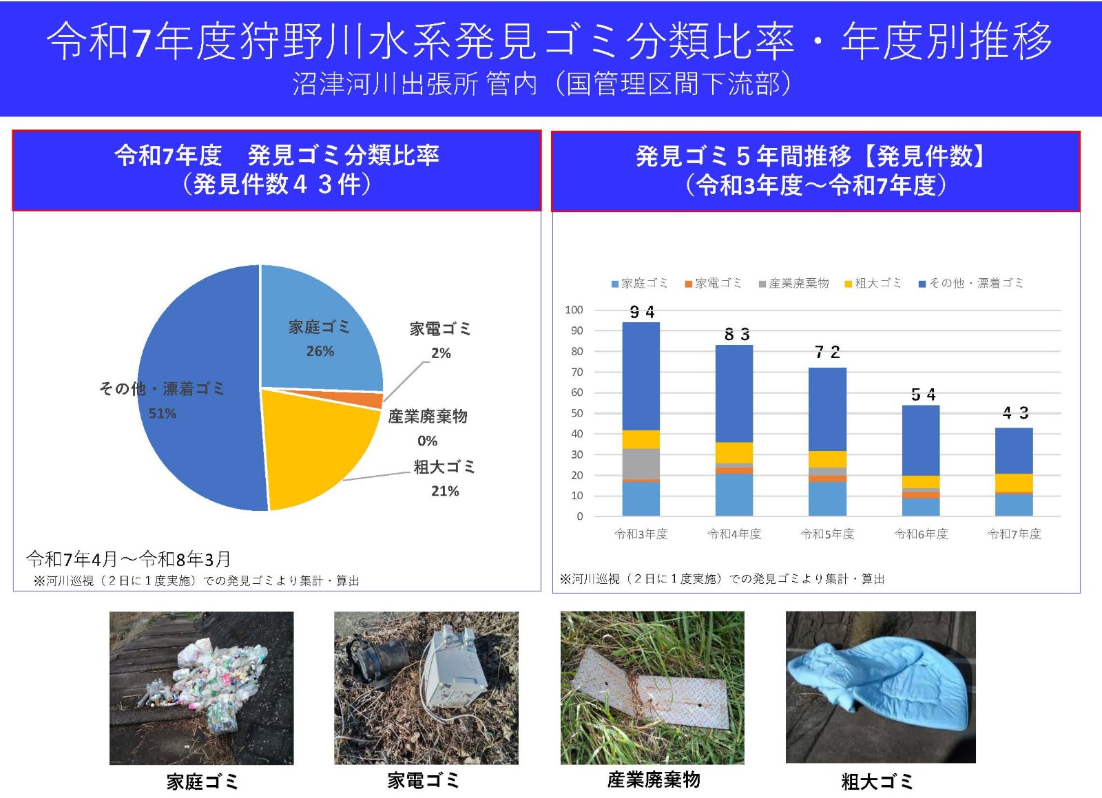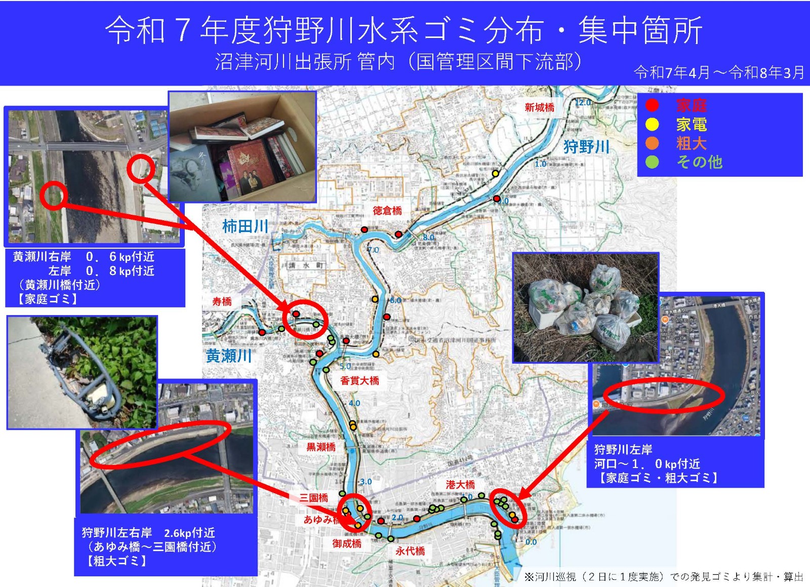 狩野川ゴミマップ 沼津河川出張所管内(直轄管理区間下流部)