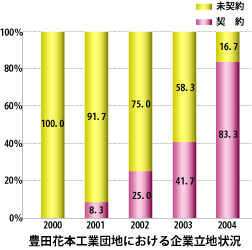 2000年度に分譲を開始した豊田花本工業団地(豊田勘八ICから約5km)では、2003〜2004年度の2ヵ年に分譲区画の約6割の契約が進みました。