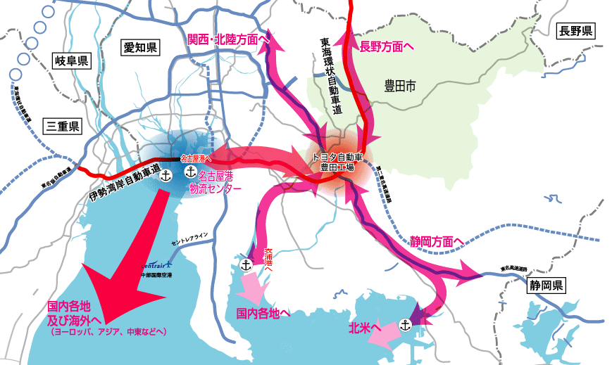 ものづくりが盛んな名古屋圏では、高速ネットワークを利用した製品輸送の効率化も進んでいます。ここでは、その代表的な事例をご紹介します。