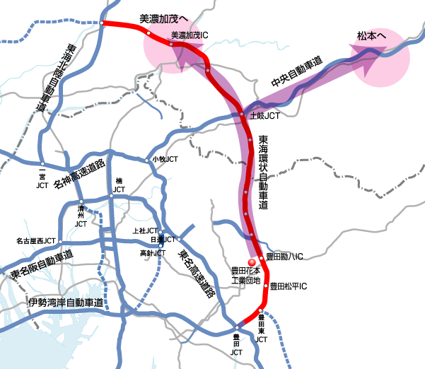 - 東海環状道開通目前の2005年3月16日、岐阜・愛知両県の沿線9市※では、地域活性化のための広域的な交流連携を進める協定と、災害時の相互応援を行う協定を結びました。