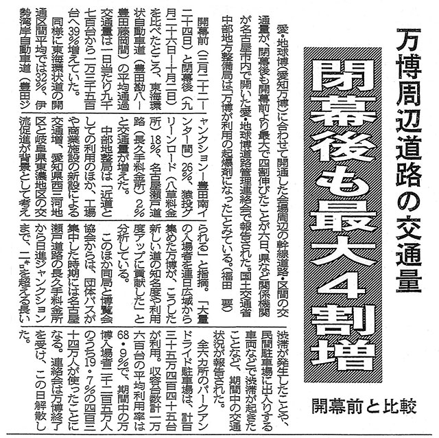 (名古屋周辺)を経由せずにこれらの環状道路を利用する車が増えました。