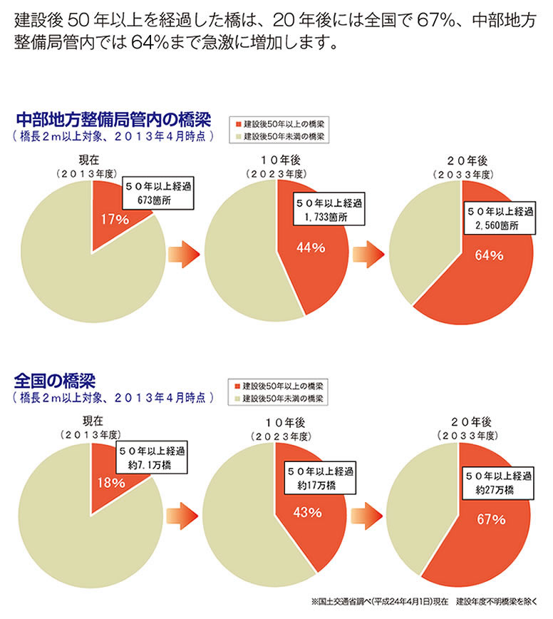 今後これらの橋の高齢化が一層進んでいきます。