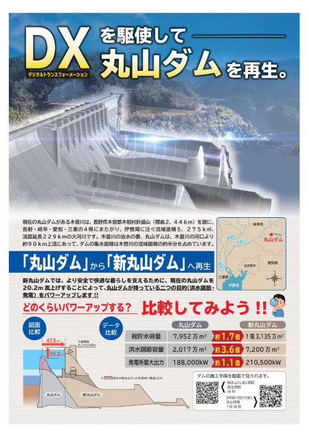 戦後、大型建設機械を使用した工事の先駆けとなった丸山ダムを再生する新丸山ダム建設事業は、「3次元情報活用モデル事業(全国13事業)」に選定され、国内最大級のダム再開発事業として、高い技術力とDXを駆使し、様々な課題にチャレンジし成長する先導的役割を果たします。