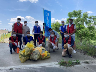 | 活動結果(ゴミの量等) | 当日は快晴で日差しが強く気温も高くなっていましたので熱中症に注意して活動を行いました。今回で16回目となりますが最初のころに比べてごみの量が減ったことを実感しました。特に大量投棄やたばこの吸い殻が減っていると感じます。河川愛護の輪が広がりごみを捨てる人が一人でも減るよう、今後も活動を続けていきたいと思います。 可燃3袋、不燃3袋、資源0袋、(合計6袋) |