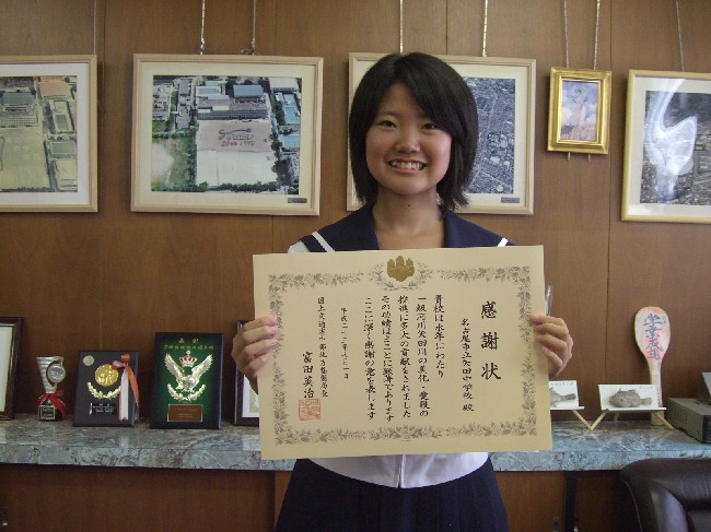 土岐川・庄内川の美化に率先して協力していただいている小・中学校について、中部地方整備局長より、感謝状が贈呈されました。