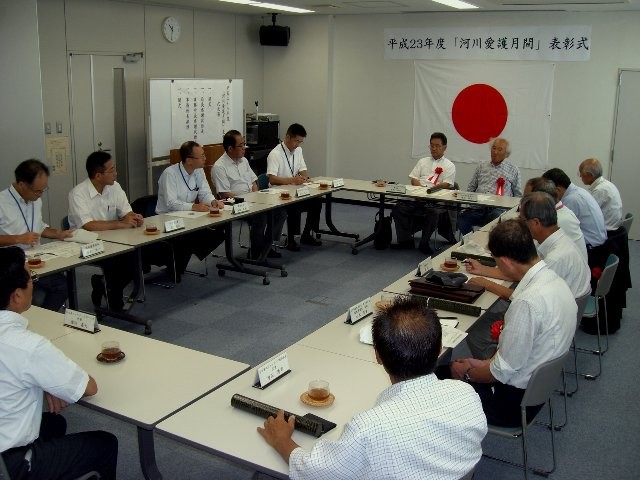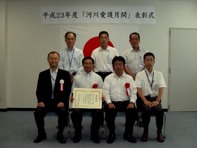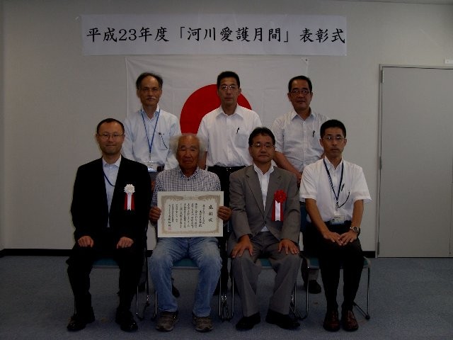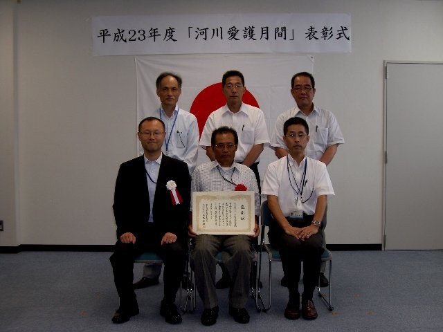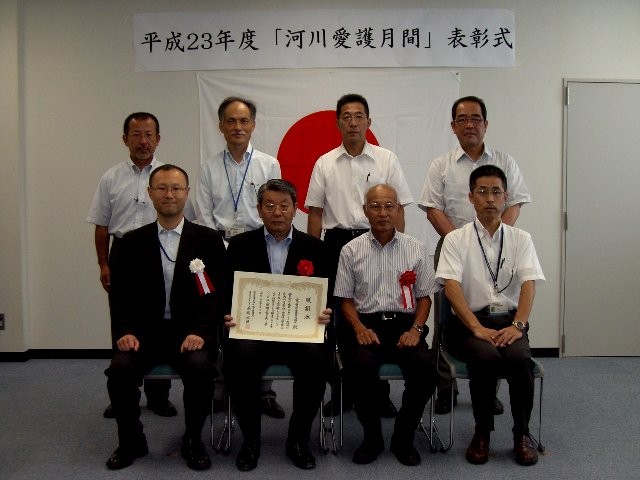 国土交通省では、7月を河川愛護月間と定めており、庄内川河川事務所でもこれまで土岐川・庄内川の美化・愛護等に貢献していただいた方々のうち、特に顕著な個人・団体を対象に局長表彰及び事務所長表彰による感謝状が贈呈されました。 |