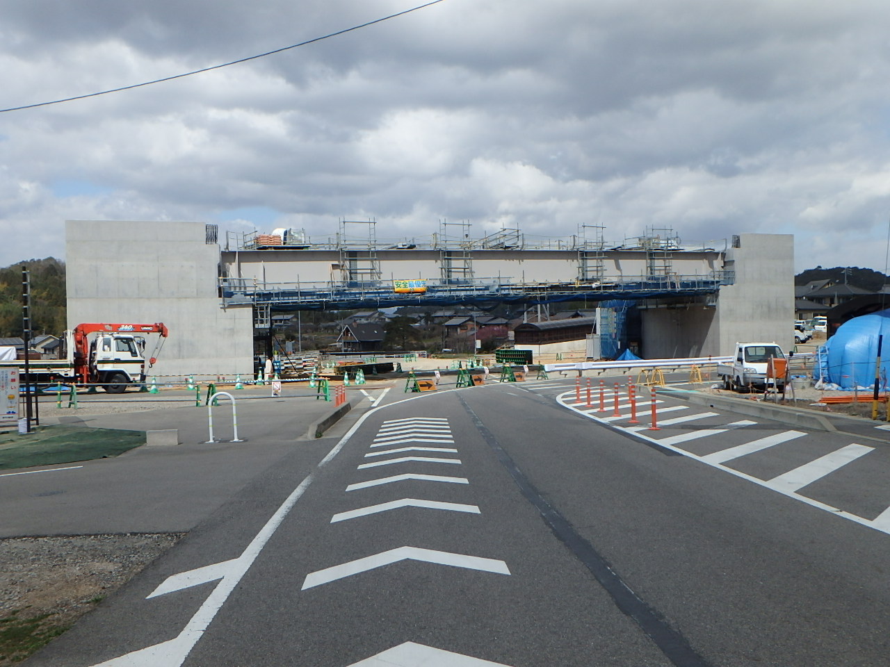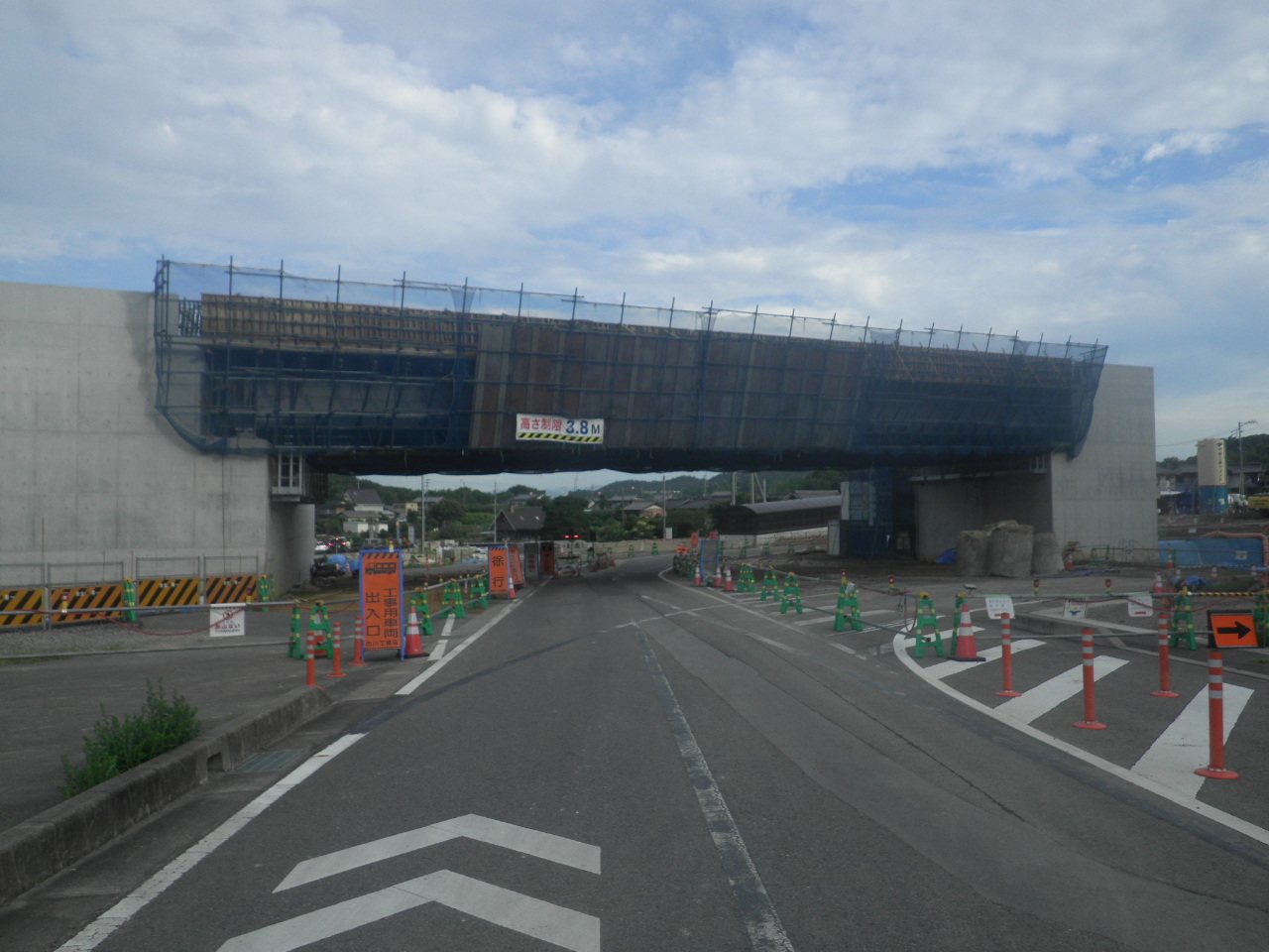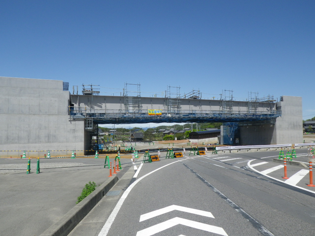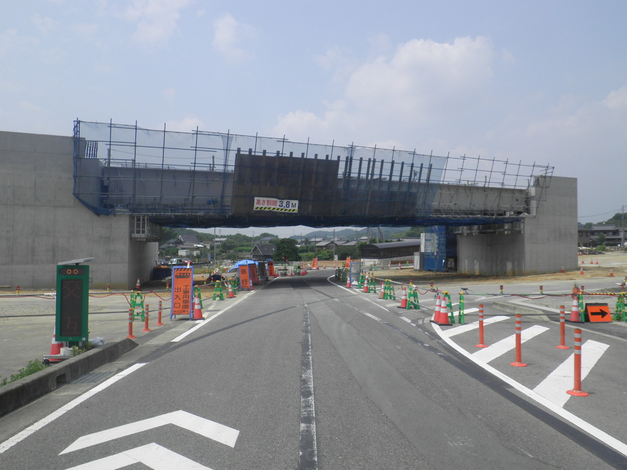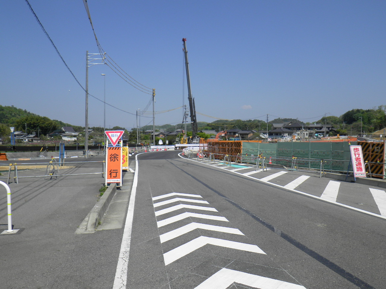 勝山IC橋の工事を行っています。切廻し町道(通学路)について通行注意をお願いします。